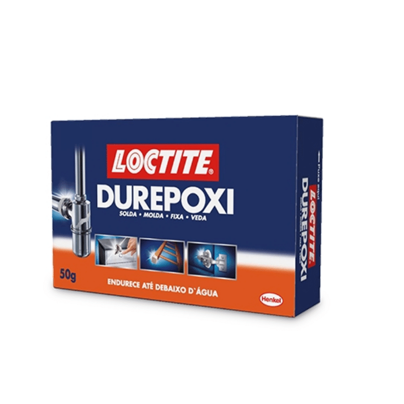 O epóxi mais vendido no Brasil! Loctite Durepoxi é um produto epoxi bi componente fácil de usar, extra forte e resistente. Solda a frio, molda, fixa, veda e reconstrói diversos tipos de materiais com praticidade, qualidade e durabilidade. Após aplicação, permite acabamento final com tinta e/ou verniz, serra ou lixa. Endurece até de baixo d'água.