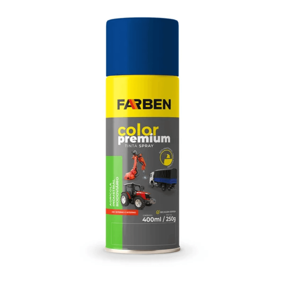 A Tinta Spray Linha Agrícola, Rodoviária e Industrial da Farben foi formulada para suportar o trabalho pesado. Diferente de um spray comum, ela possui alta resistência a intempéries, abrasão, óleo e agentes químicos leves, garantindo proteção contra ferrugem e durabilidade no campo ou na indústria. Seu acabamento profissional devolve a aparência original do equipamento com secagem rápida.