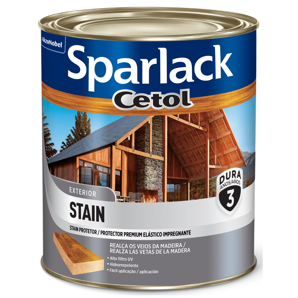 Sparlack Cetol Stain é um protetor elástico impregnante, que não trinca e não descasca. Realça os veios da madeira. Durabilidade de 3 anos (a durabilidade pode ser inferior para a cor Incolor UV Glass). Proteção máxima para madeiras expostas ao sol, à chuva e proteção contra radiação UV. Sua fórmula penetra fundo na madeira, tratando e realçando a beleza natural dos seus veios.