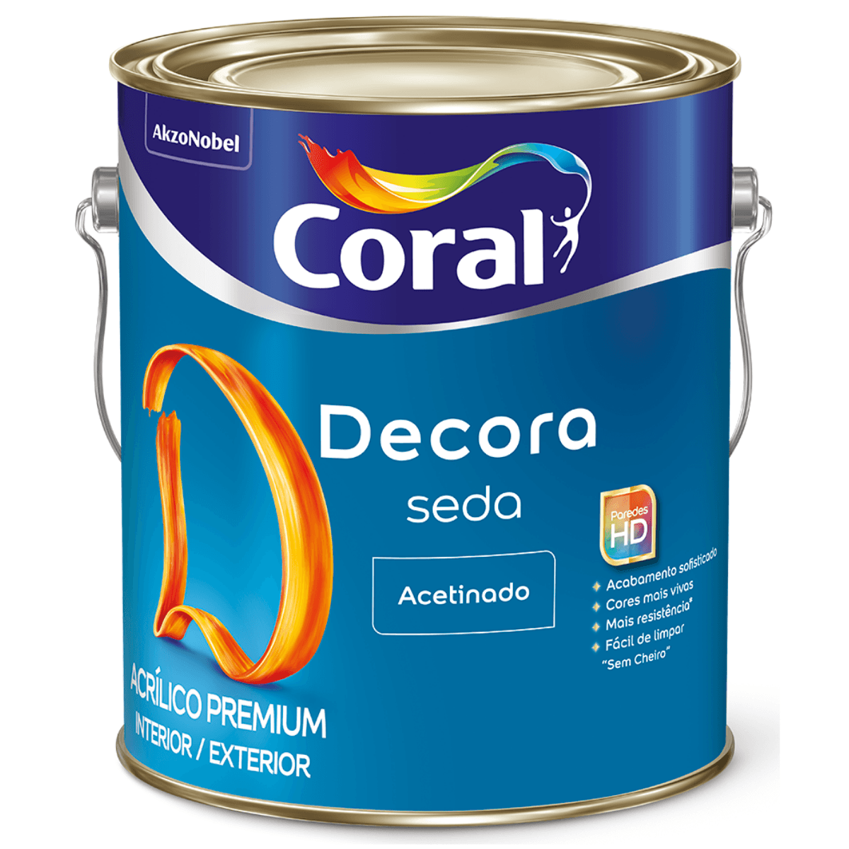 CORAL DECORA SEDA é um Acrílico Premium Acetinado que proporciona acabamento sofisticado e requinte para as paredes da sua casa e conta com a exclusiva tecnologia Paredes HD, que proporciona cores mais vivas e acabamento perfeito.